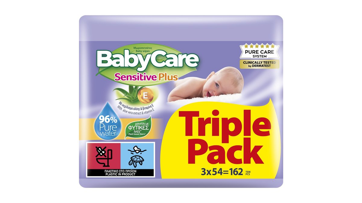 BabyCare Sensitive Μωρομάντηλα με Eκχύλισμα Aλόης, 3x54 τμχ, 162 τμχ