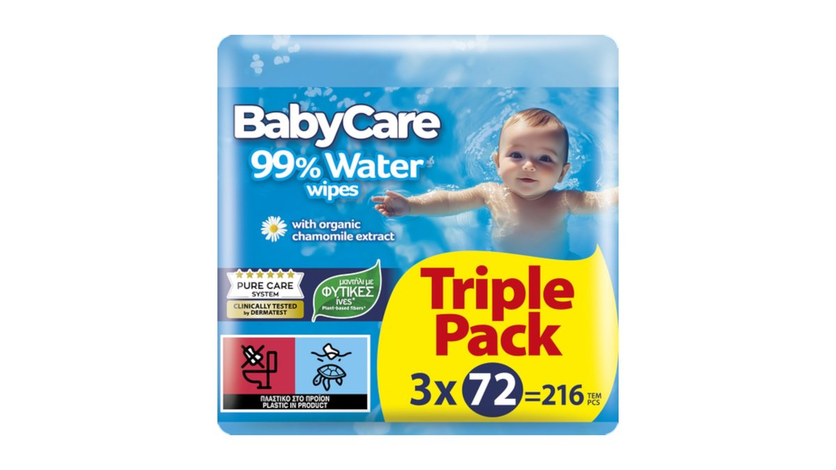 BabyCare Μωρομάντηλα 99% Water Triple Pack 3x72 τμχ