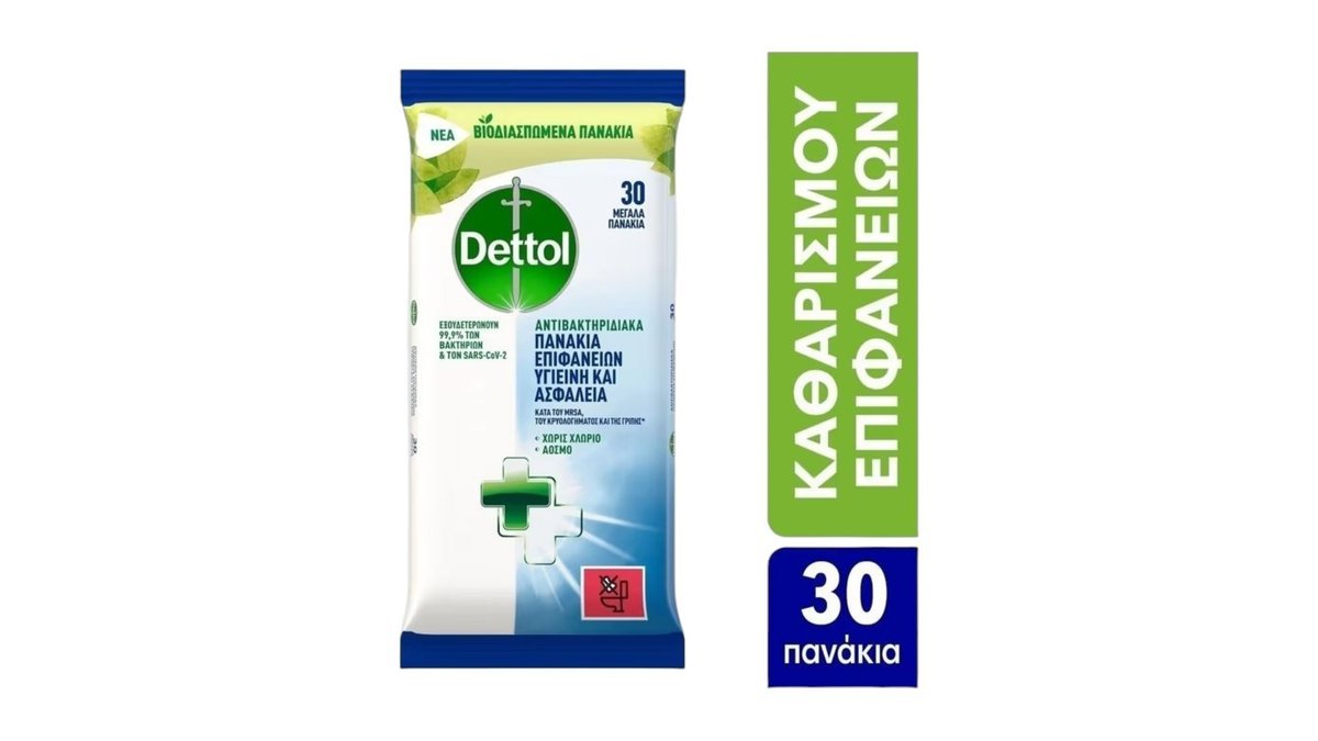 Dettol Απολυμαντικά Μαντηλάκια Επιφανειών 30 τμχ