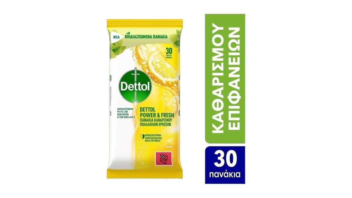 Dettol Απολυμαντικά Πανάκια Καθαρισμού Επιφανειών Lemon & Lime 30 τμχ