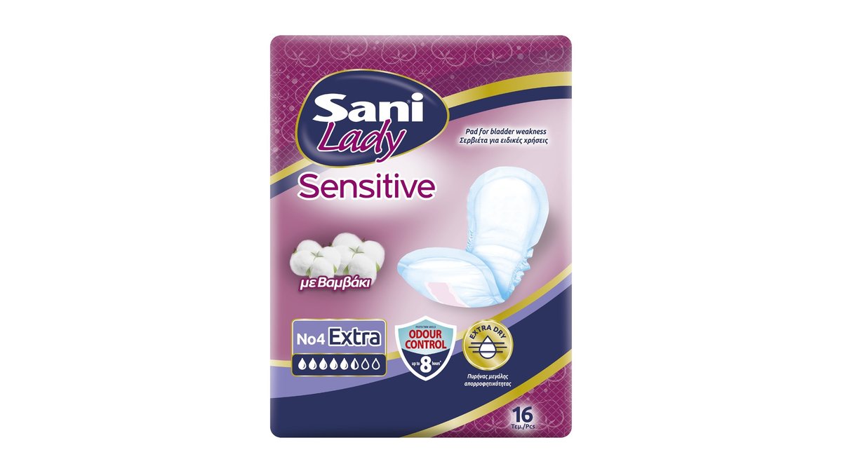 Sani Lady Sensitive Discreet Σερβιέτες Ακράτειας No4 Extra 16 τμχ