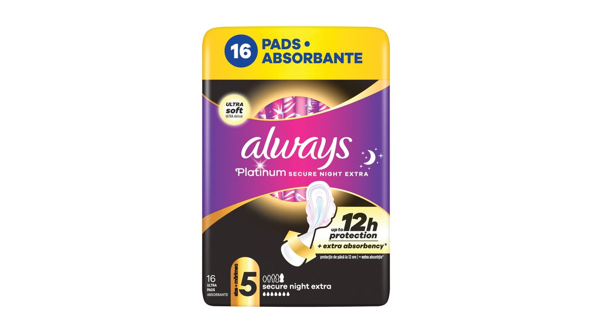 Always Σερβιέτες Platinum Secure Night Extra Μέγεθος 5 με Φτερά 16 τμχ