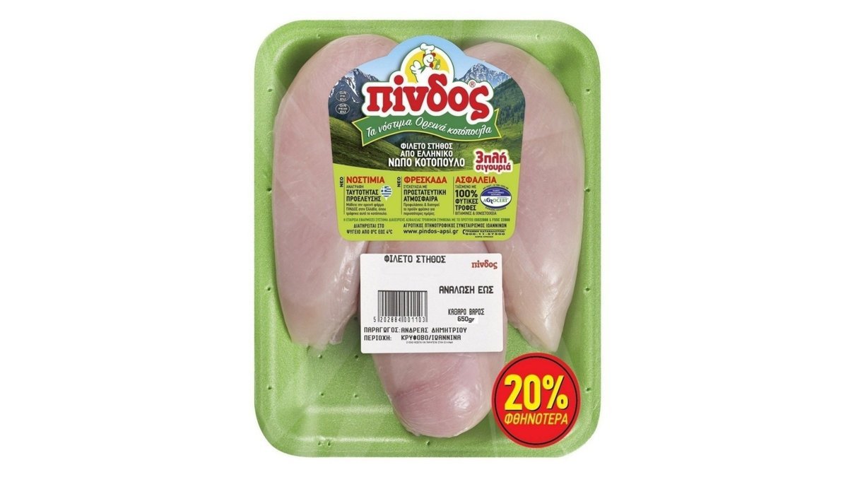 Πίνδος Φιλέτο Στήθος Κοτόπουλο -20%, 650 g