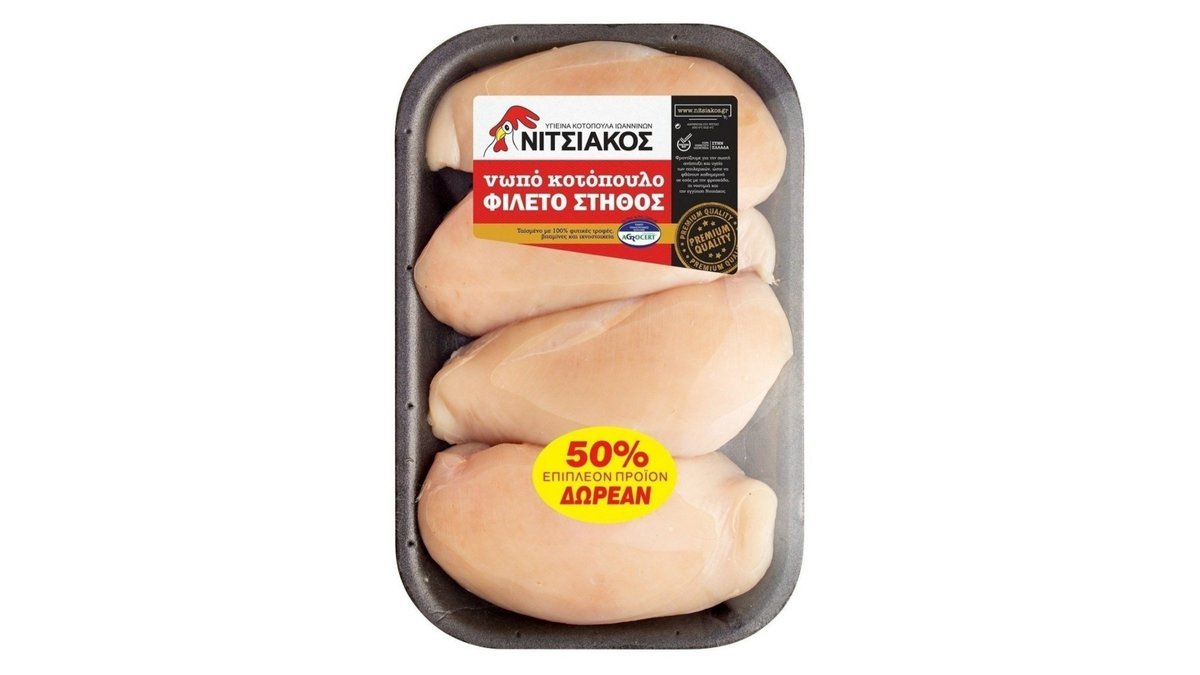 ΝΙΤΣΙΑΚΟΣ Φιλέτο Στήθος Κοτόπουλο +50% Δωρεάν Προϊόν, 700 g