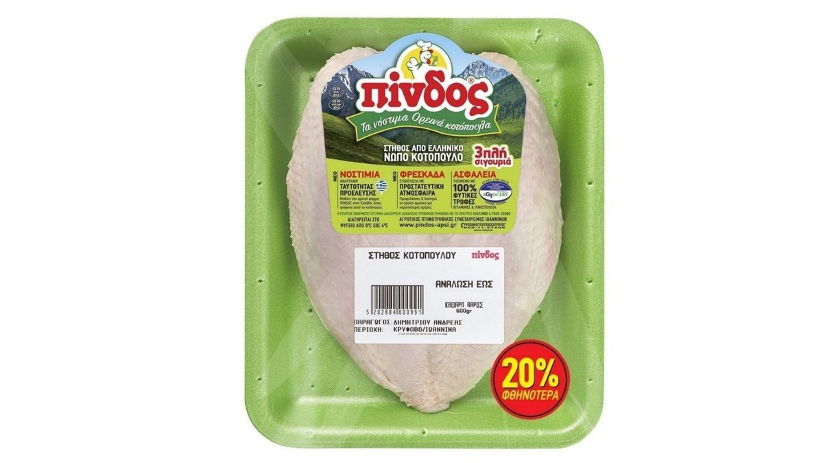 Πίνδος Στήθος Κοτόπουλο -20%, 600 g