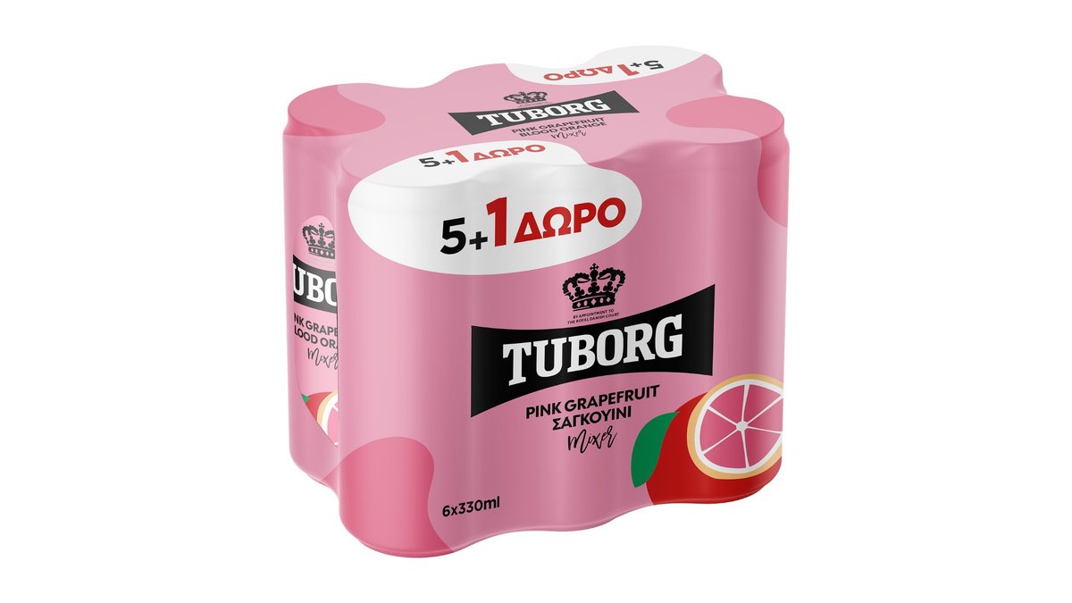 Tuborg Pink Grapefruit Σαγκουίνι Κουτί, 5+1 Δώρο, (6x330 ml), 1.98 L