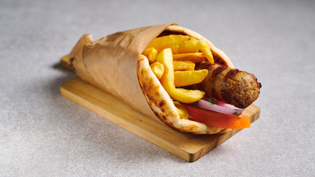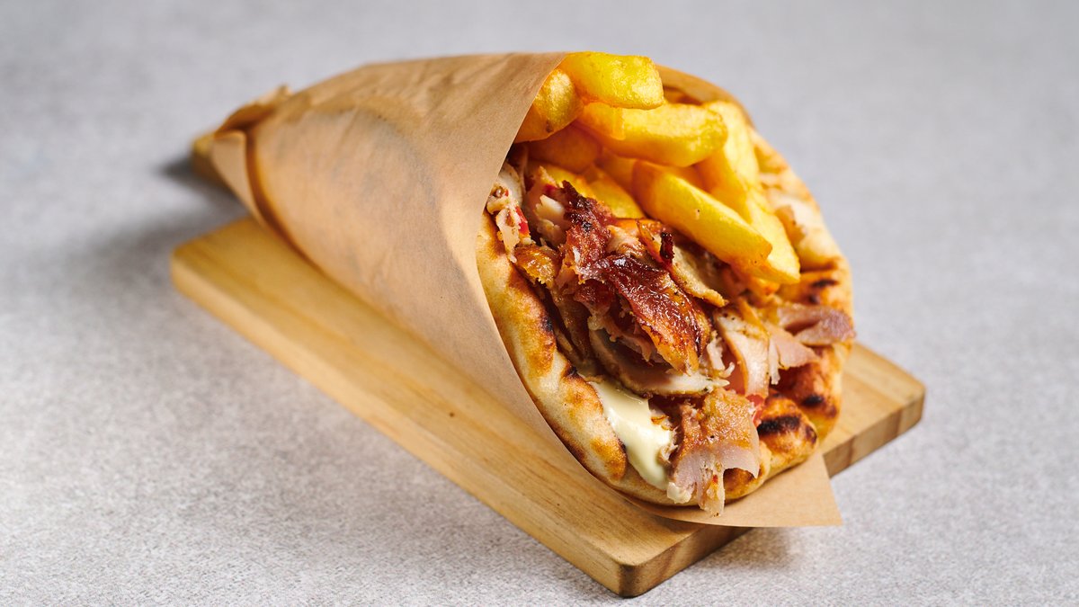 Συνοδεύεται από ντομάτα, κρεμμύδι και 1 πίτα