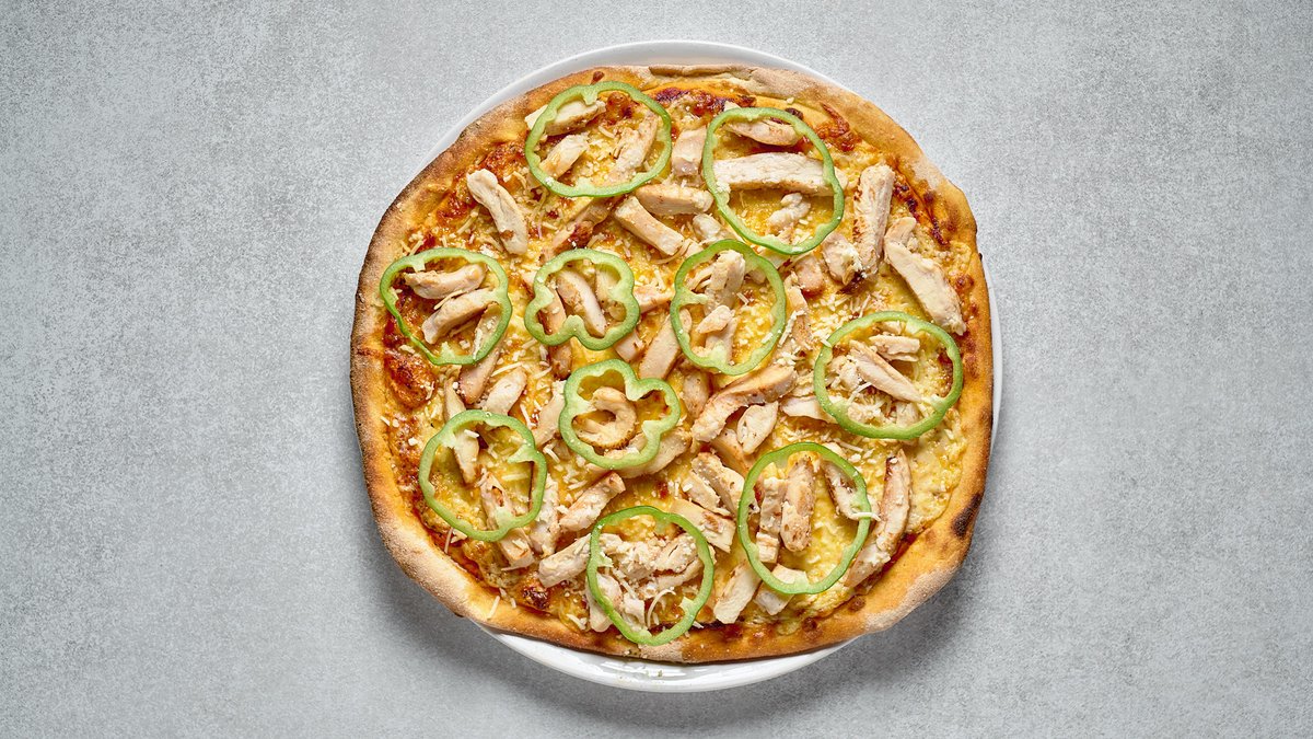 Με σάλτσα ντομάτας, τυρί gouda, μοτσαρέλα, κοτόπουλο, μανιτάρια και πιπεριά