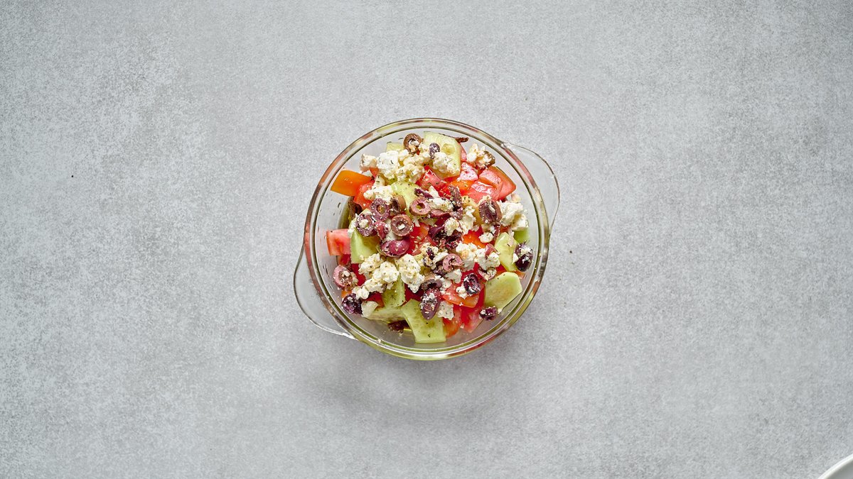 Σαλάτα με ντομάτα, αγγούρι, ελιές, πιπεριές, κρεμμύδι και ρίγανη
