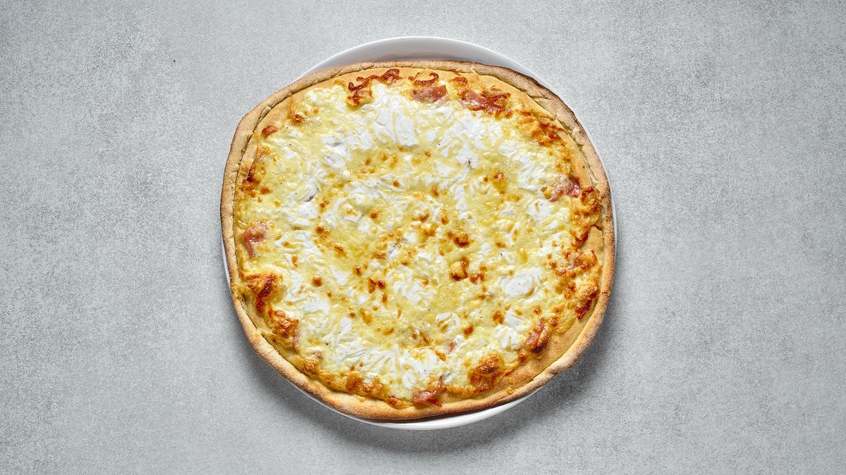 Με κρέμα γάλακτος, μοτσαρέλα, τυρί gouda, μανιτάρια και μπέικον