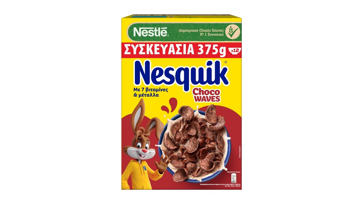 Nesquik Choco Waves Παιδικά Δημητριακά Πρωινού Ολικής Άλεσης με Σοκολατένια Γεύση, 375 g