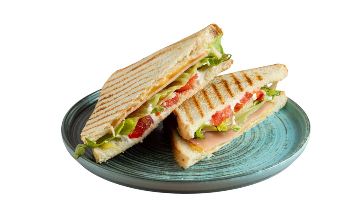 ζαμπόν, γαλοπούλα, μπέικον, τυρί, μαρούλι, ντομάτα, μαγιονέζα. Συνοδεύεται με τηγανιτές πατάτες
