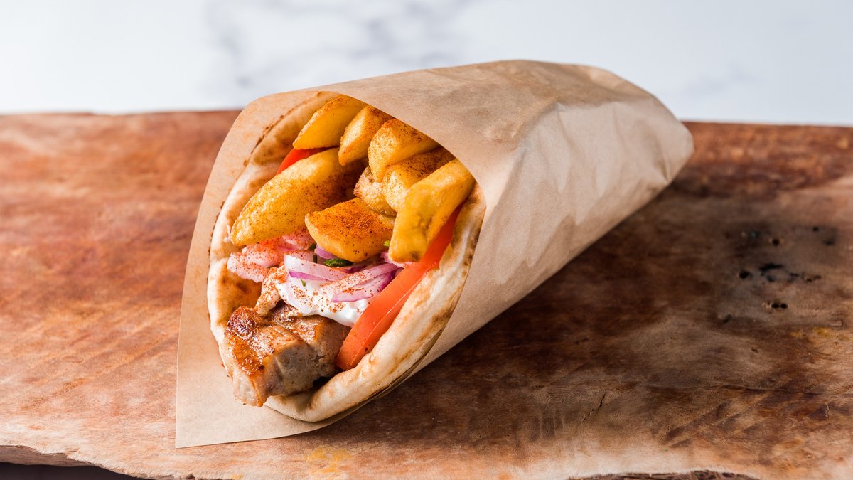 Με γύρο χοιρινό, φρέσκο μπιφτέκι, γεμιστό λουκάνικο με φέτα και λιαστή ντομάτα και μπέικον. Συνοδεύεται από 2 πίτες, πατάτες τηγανητές, κρεμμύδι, ντομάτα, σως και γιαούρτι