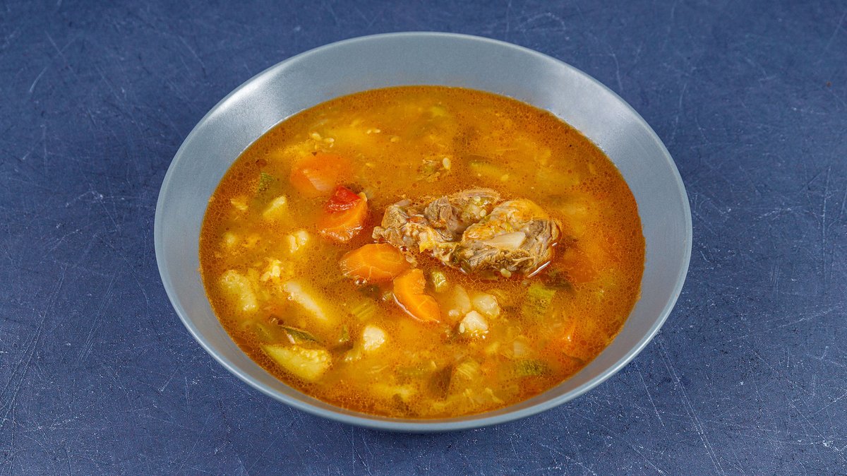 Σούπα από μοσχάρι, πατάτα, κολοκύθι, καρότο, κρεμμύδι, ντομάτα, σέλινο, λεμόνι