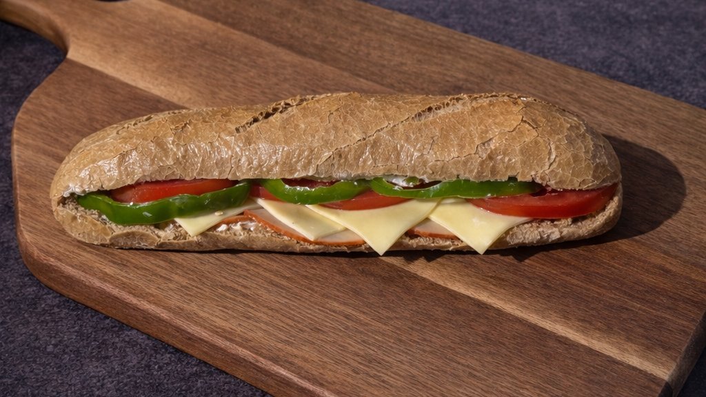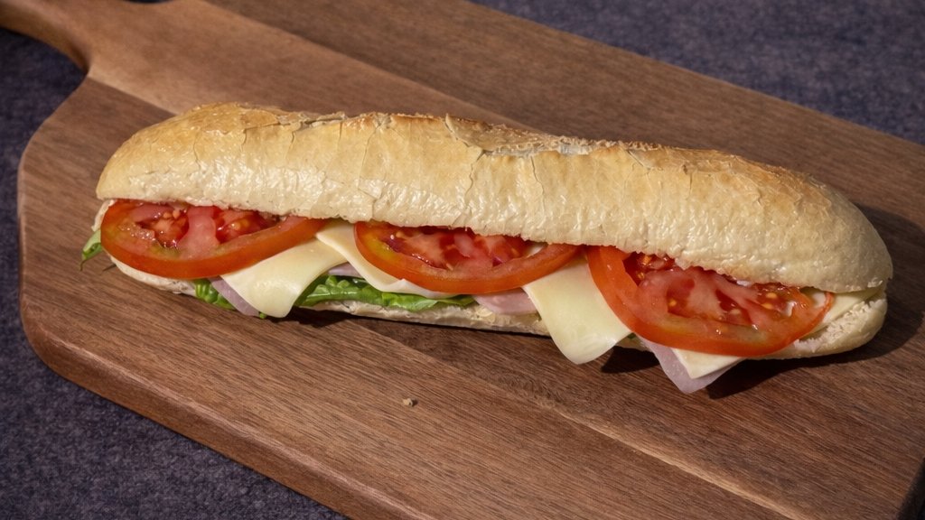 Με ζαμπόν, edam, μαρούλι , ντομάτα & μαγιονέζα.