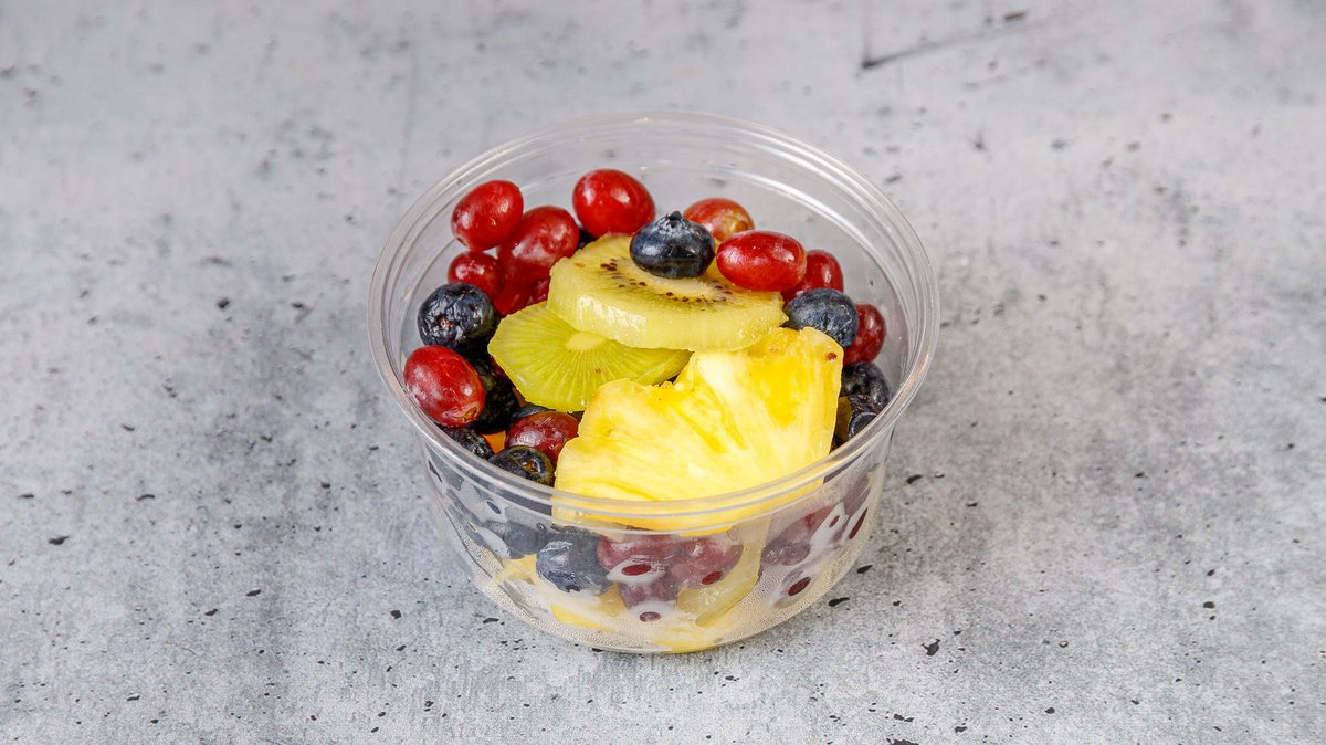 130 kcal, με 3 g πρωτεΐνης. Σαλάτα με φρέσκα φρούτα εποχής