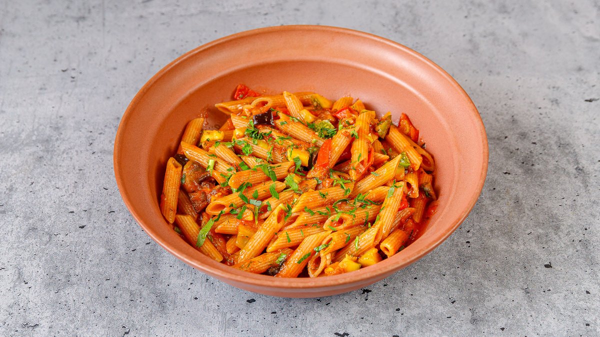 400 kcal, με 25 g πρωτεΐνης. Πιάτο με λαχανικά εποχής και κόκκινη σάλτσα
