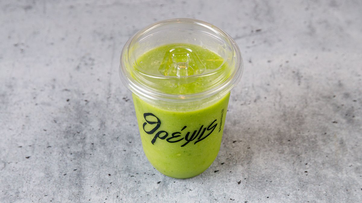 240 kcal, με 4 g πρωτεΐνης. Με νερό, γάλα αμυγδάλου, μπανάνα φρούτο, avocado, mango, ginger, baby σπανάκι και matcha