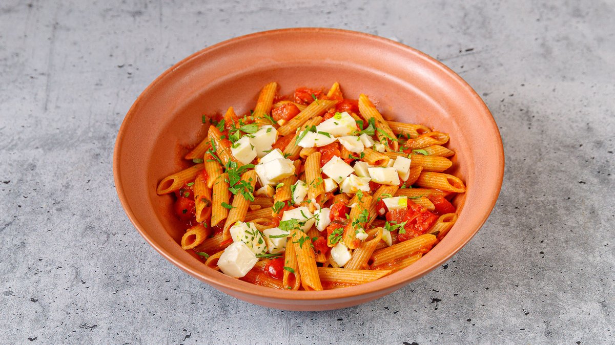 440 kcal, με 20 g πρωτεΐνης. Πιάτο με σκόρδο, ντομάτα, βασιλικό και μοτσαρέλα