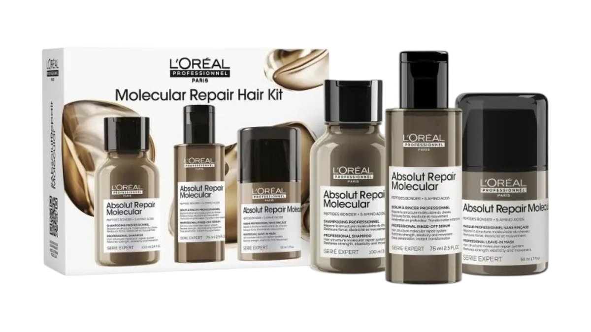 L'Oréal Professionnel Absolut Repair Molecular Mini Trio Kit (Shampoo 100ml + Serum 75ml + Leave-in Mask 50ml)
