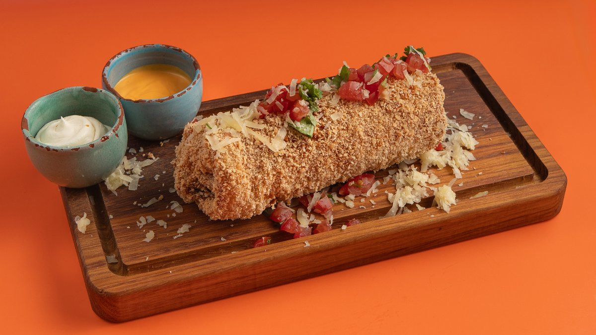 Burrito ψημένο στο μαντέμι με τσένταρ, pico de gallo, μαύρο φασόλι, sour cream, πράσινο ρύζι και γέμιση της επιλογής σου