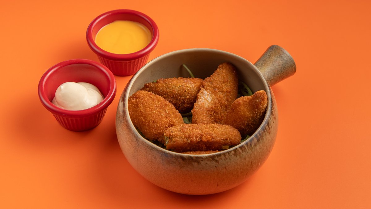 12 Τεμάχια.Παναρισμένες πιπεριές με τυρί και cheddar sauce