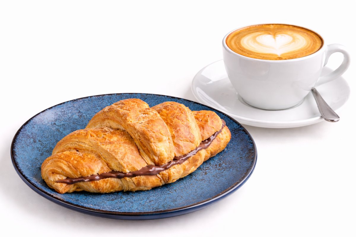 1 Καφές επιλογής + 1 Κρουασάν Βουτύρου με Σοκολάτα