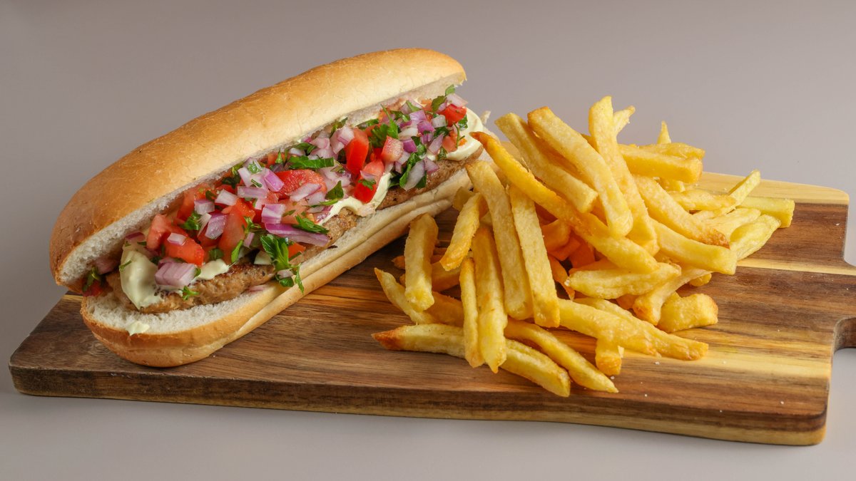 Αφράτο σάντουιτς με σουτζουκάκια χειροποίητα, ντομάτα, κρεμμύδι και sauce επιλογής