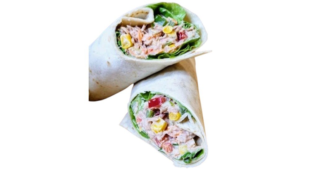 Τορτίγια με τονοσαλάτα, αγγούρι, ντομάτα, μαρούλι, καλαμπόκι