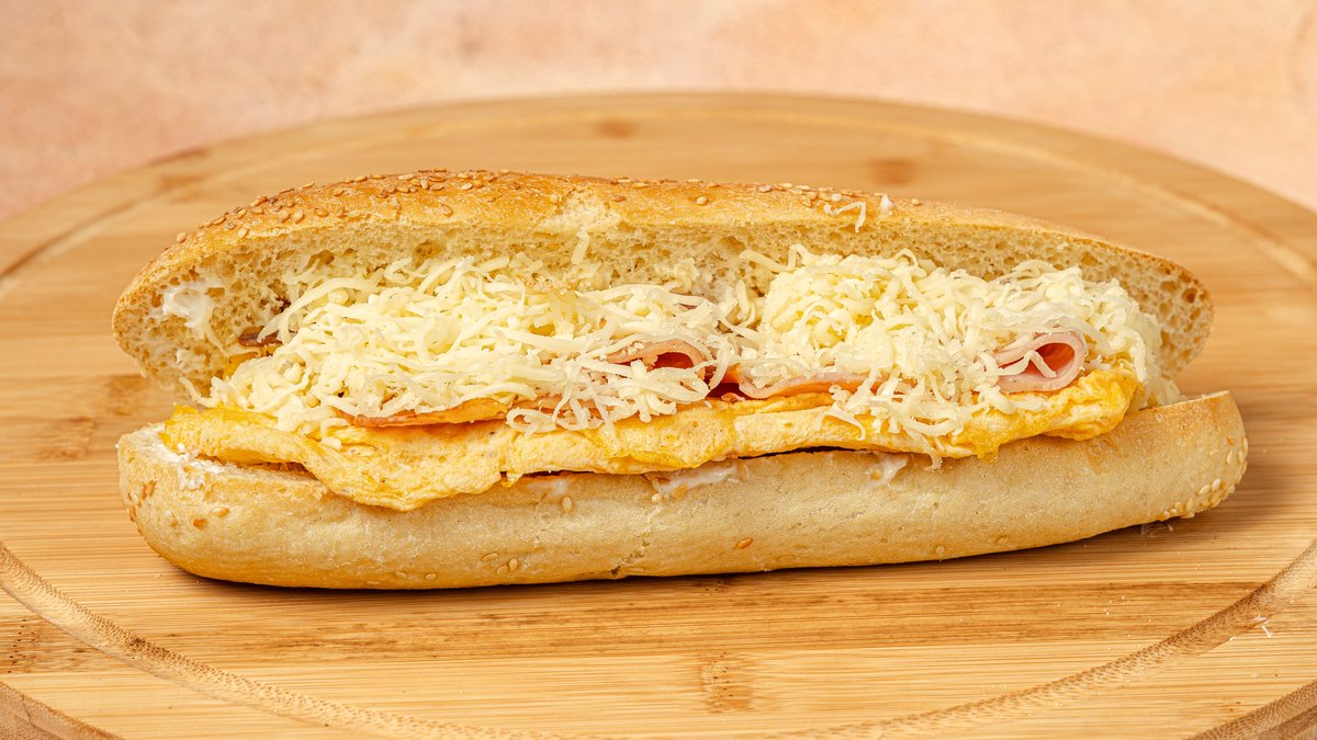 Σάντουιτς με ομελέτα, μπέικον, τυρί, ντομάτα και μαγιονέζα