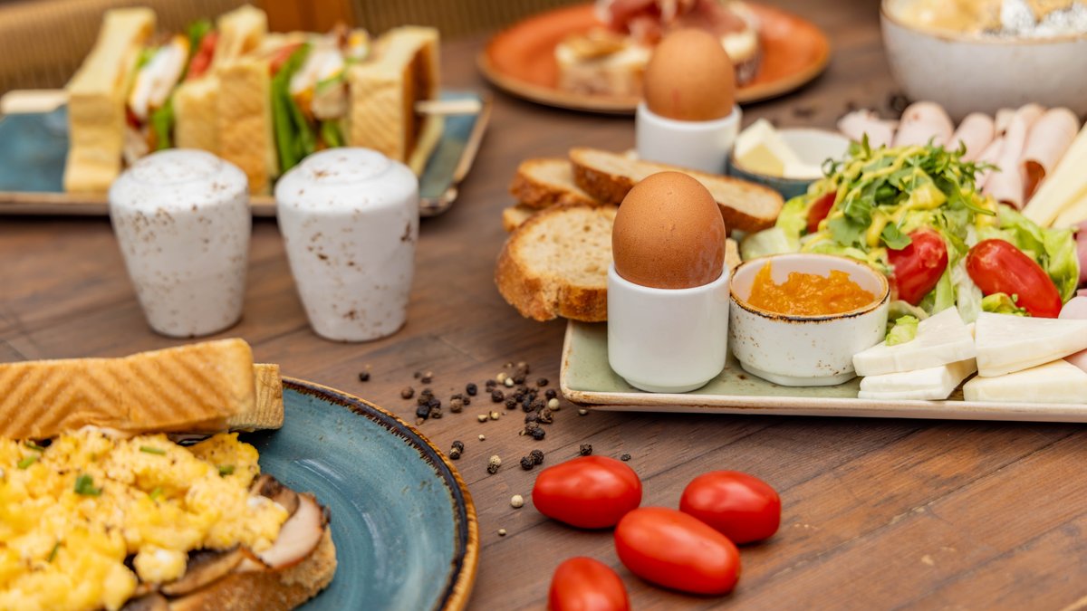 2 βραστά αυγά, γαλοπούλα φουαντρέ, μοσχαρίσιο ζαμπόν, παστράμι, γραβιέρα, μαστέλο χίου και μαρμελάδα επιλογής perivoli