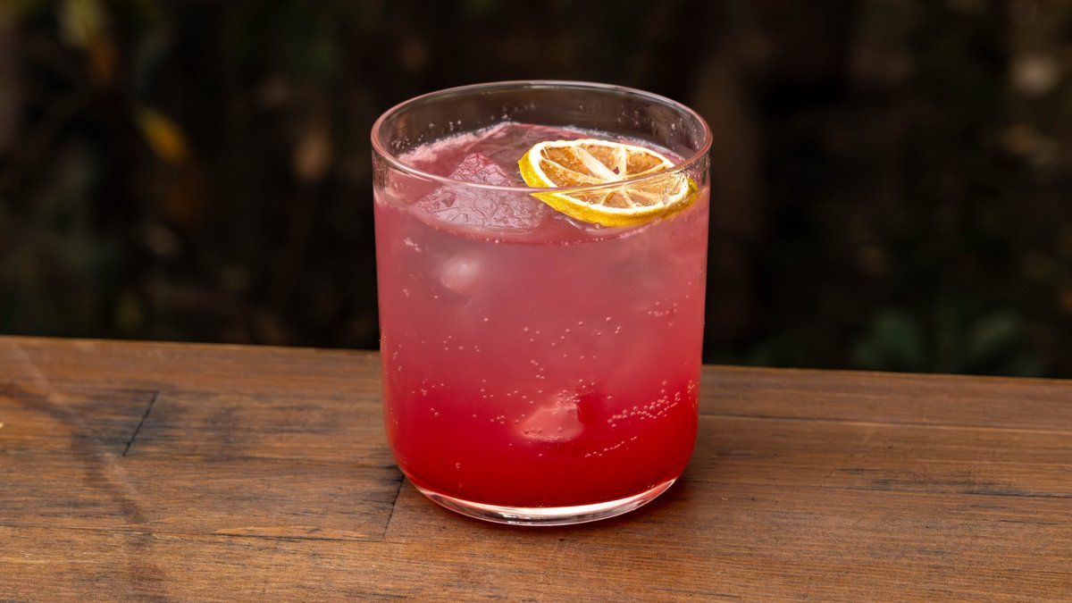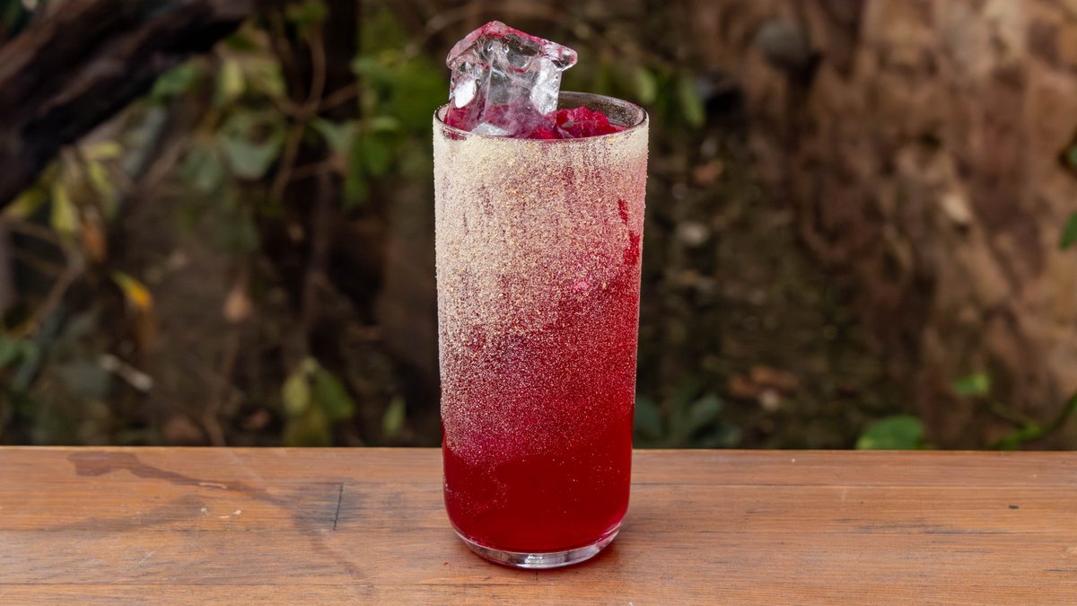 Rooster rojo blanco tequila, vermouth, beet grenadine, lemon, grapefruit soda και mandarin salt