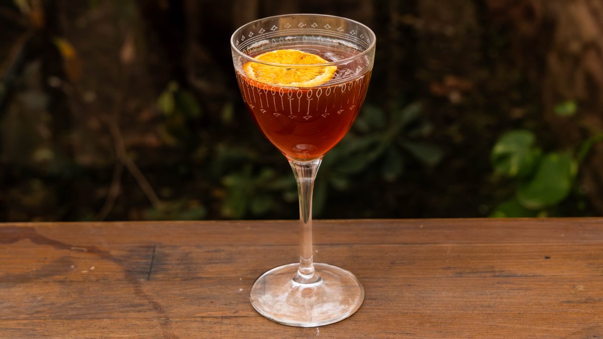 Scotch, orange juice, antica formula και cherry liqueur