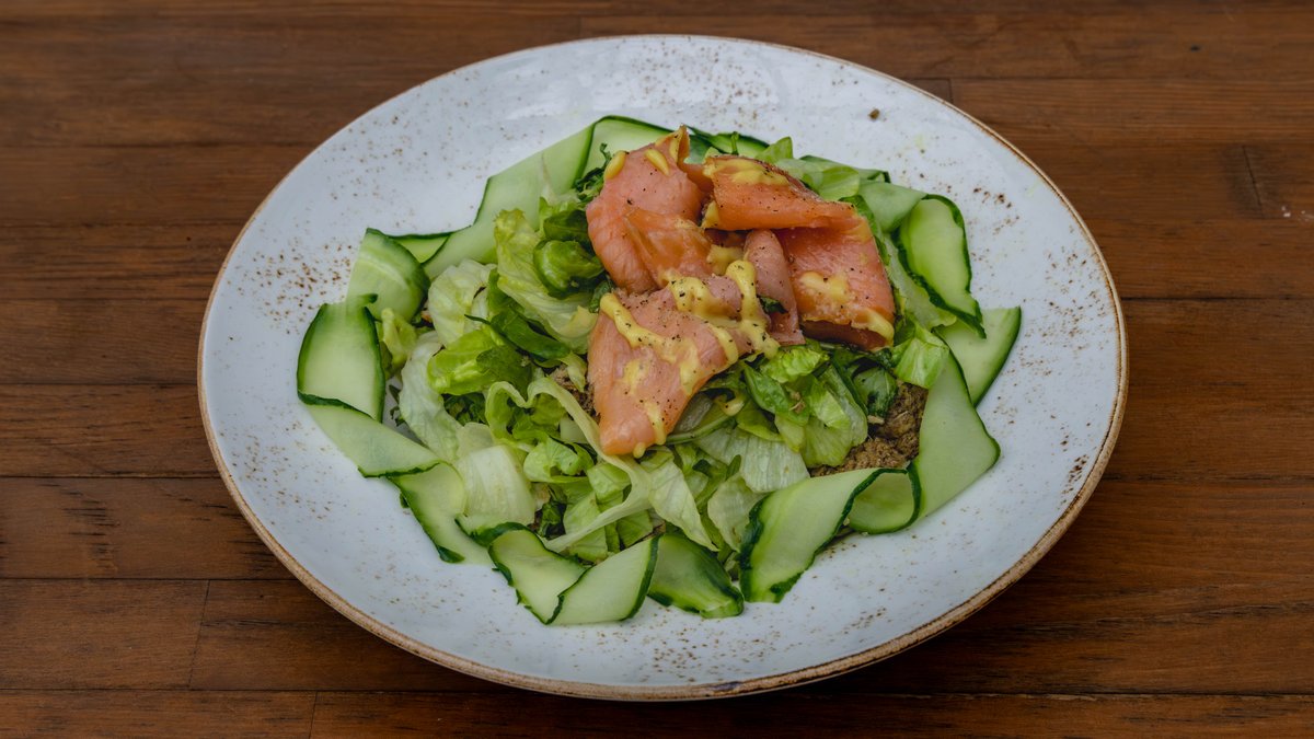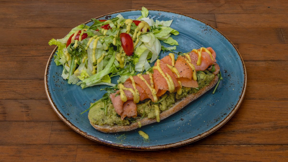 Γουακαμόλε, σολομός και ρόκα συνοδεύεται με σαλάτα