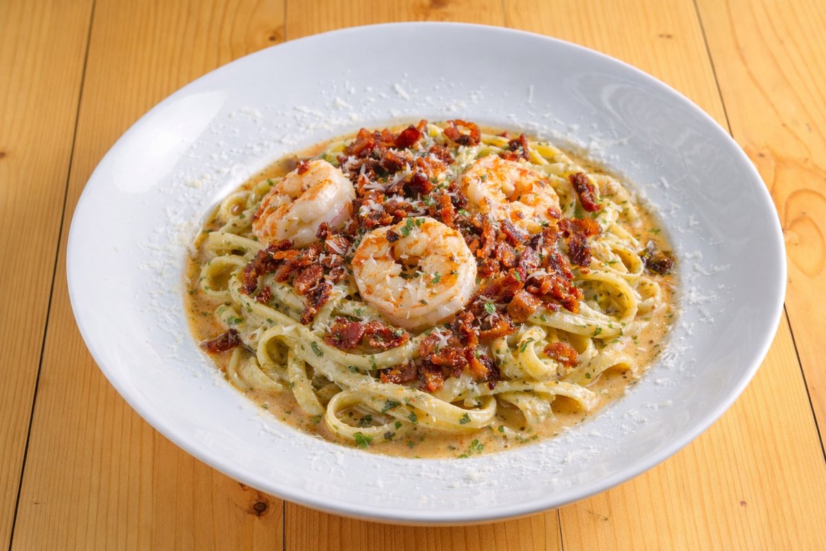 Linguine Con Pesto Rosolata E Gamberi