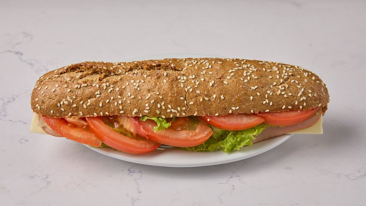 Μπαγκέτα με ζαμπόν, τυρί, ντομάτα, μαρούλι, μαγιονέζα