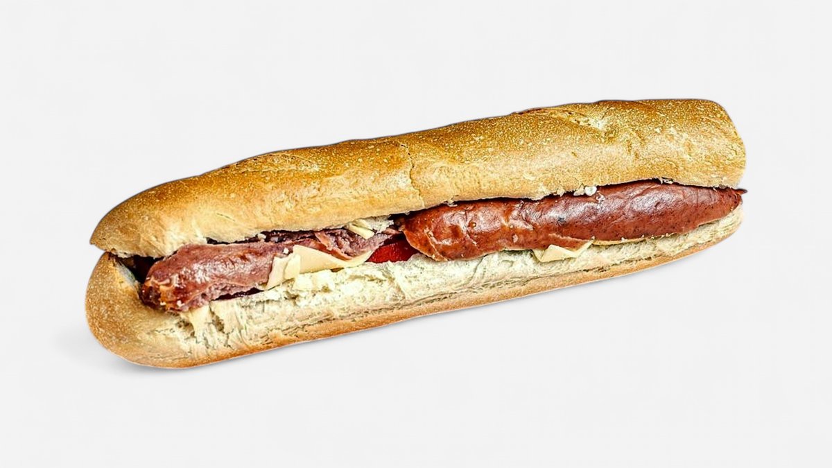 Με τυρί, χωριάτικο λουκάνικο, πιπεριά, ντομάτα και σως της επιλογής σου