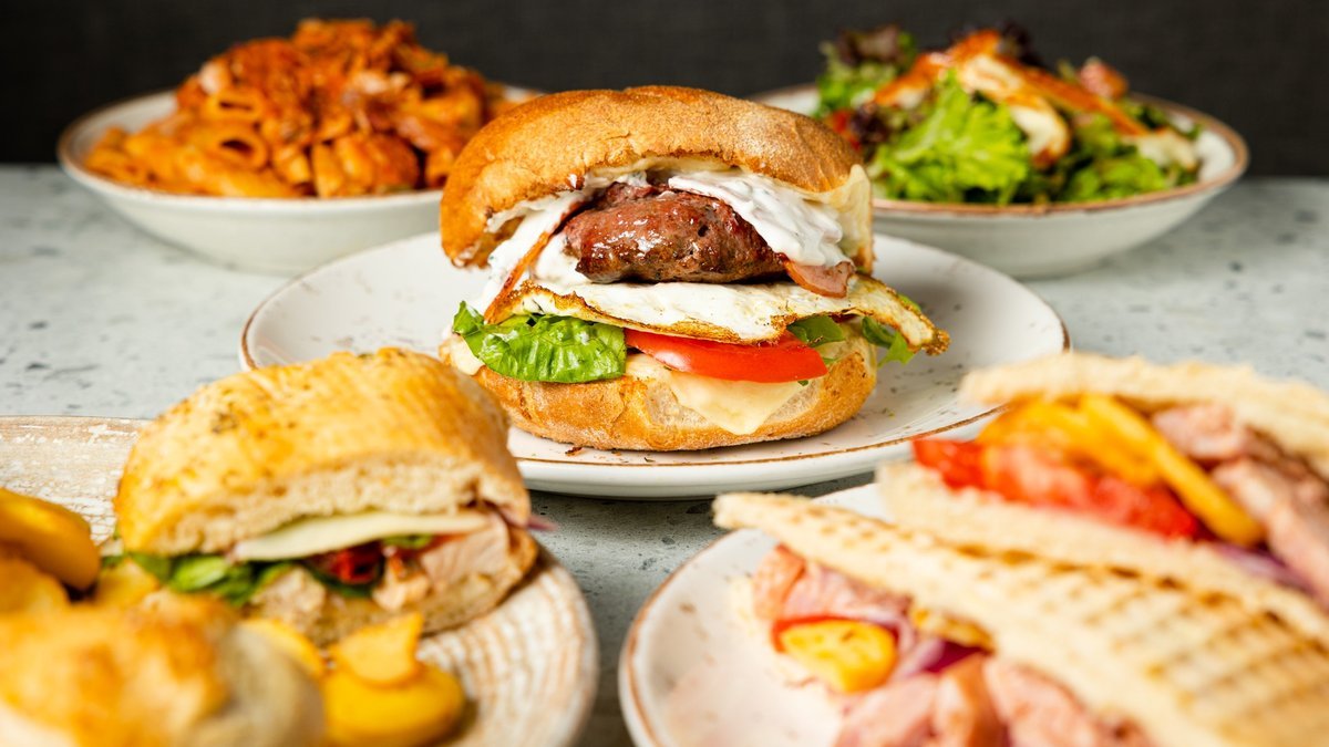 Με κιμά μοσχαρίσιο Black Angus. Συνοδεύεται από πατάτες τηγανητές, σαλάτα, ψωμί και sauce της επιλογής σου