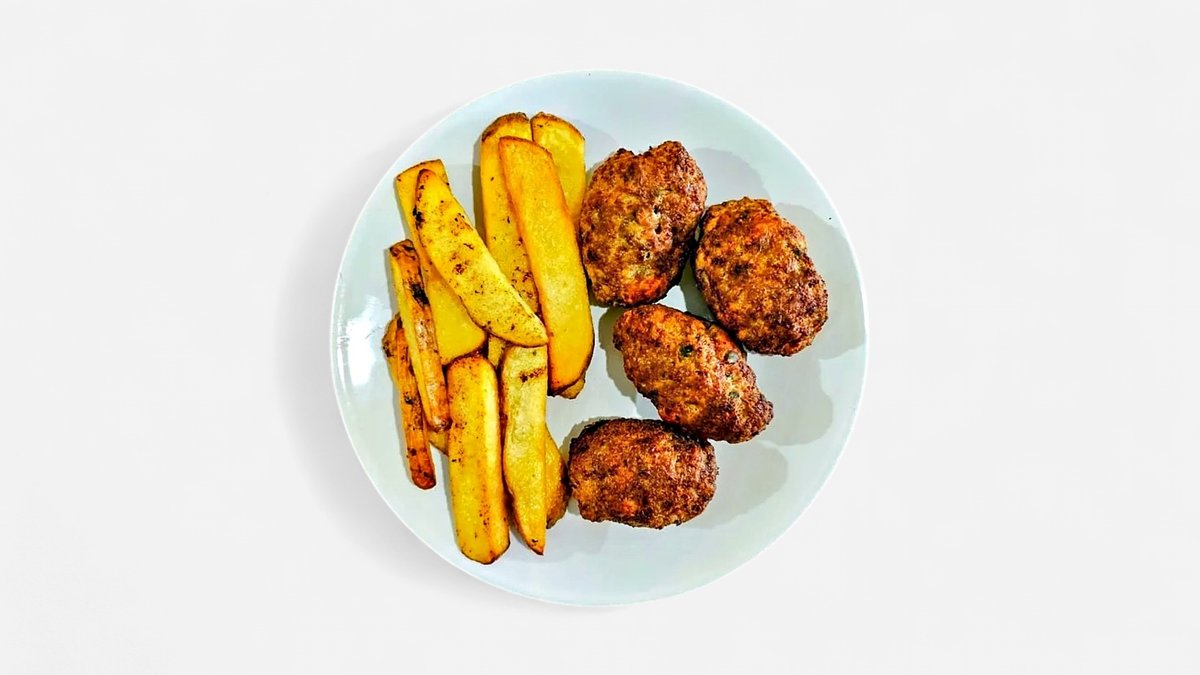 3 τεμάχια. Με πατάτες, ζυμαράκι, ντομάτα, σως και κρεμμύδι