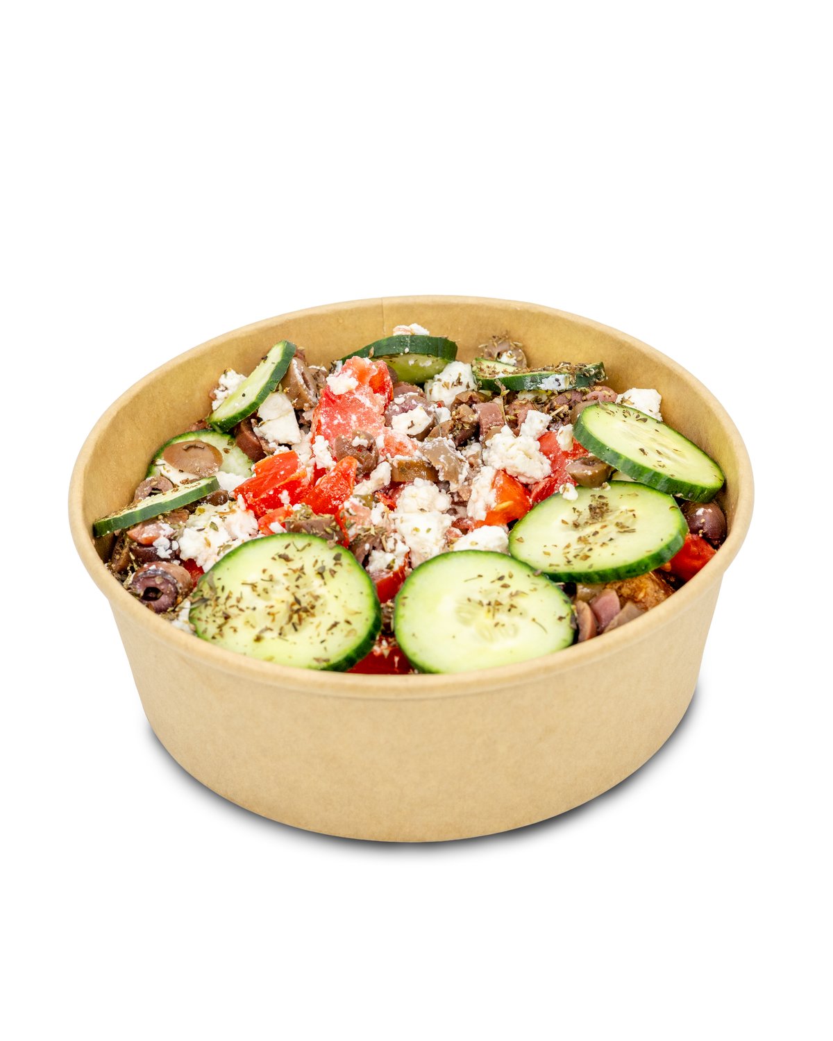 Με φέτα, ντομάτα, αγγούρι, ελιά, ελαιόλαδο και ρίγανη