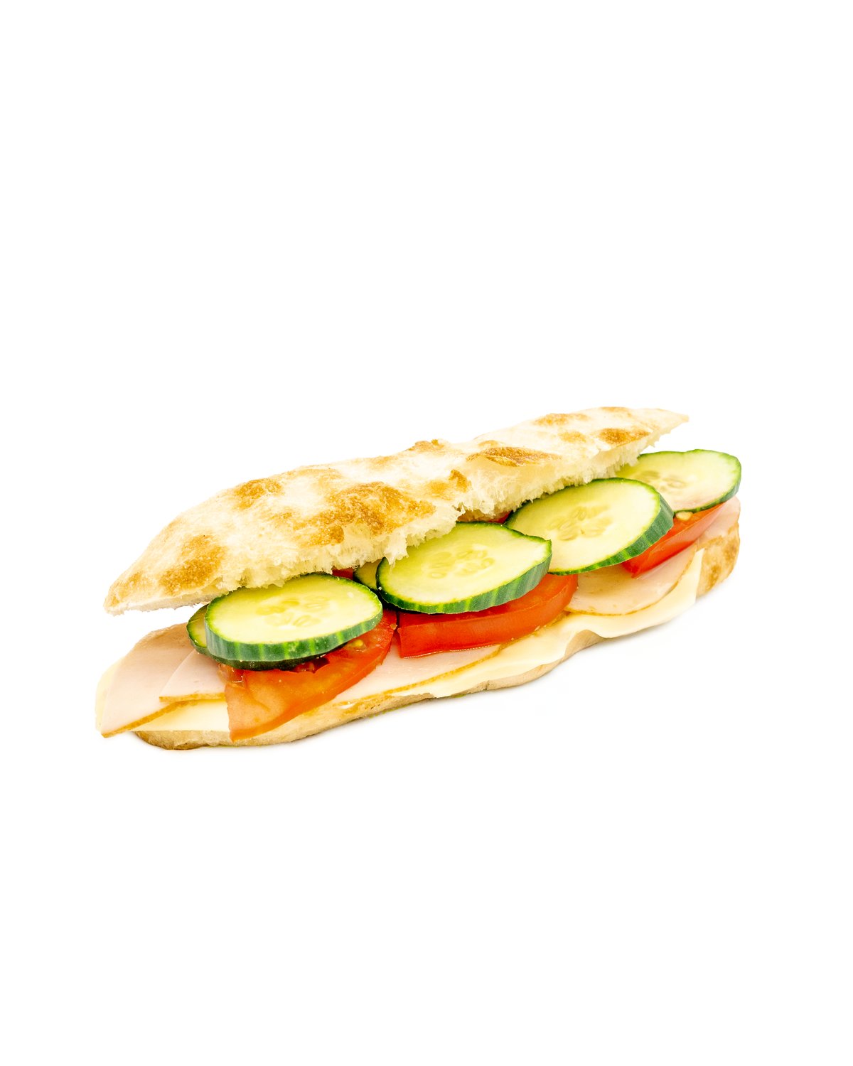 Με γαλοπούλα, κασέρι, ντομάτα, αγγούρι και μαγιονέζα