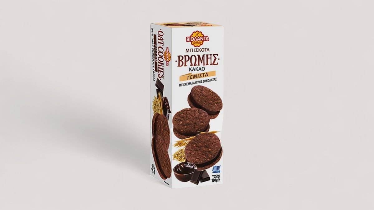 Βιολάντα Μπισκότα Βρώμης Κακάο Γεμιστά με Κρέμα Μαύρη Σοκολάτα 180 g