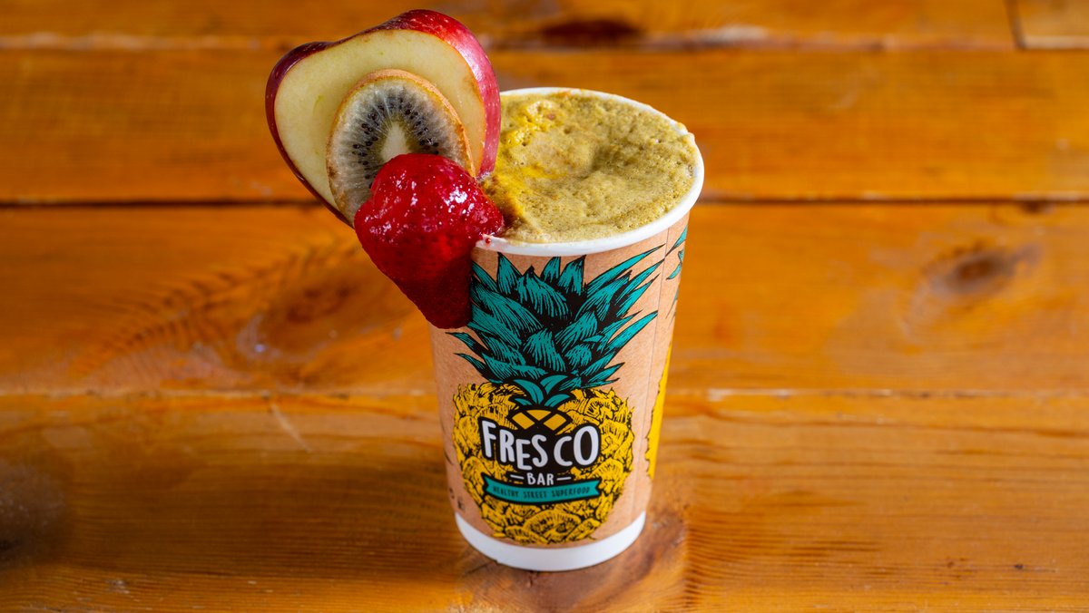 Με γάλα σόγιας, avocado, μπανάνα, σπανάκι, τραγανά μούσλι, βρώμη, μέλι, maca και λιναρόσπορος