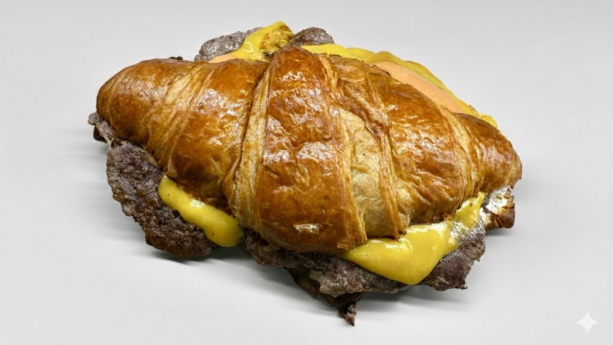 🥐🍔 Croissant Smash Burger Αφράτο κρουασάν βουτύρου, ψημένο ελαφρά για να κρατά την τέλεια ισορροπία τραγανού και μαλακού. Στο εσωτερικό του, δύο smash μπιφτέκια καλοψημένα, ζουμερά και γεμάτα γεύση. Ολοκληρώνεται με πλούσια σως και τη signature κέτσαπ του καταστήματός μας, που δένουν αρμονικά κάθε μπουκιά. Ένα burger υψηλής αισθητικής και γεύσης, για όσους αναζητούν κάτι πραγματικά ξεχωριστό.