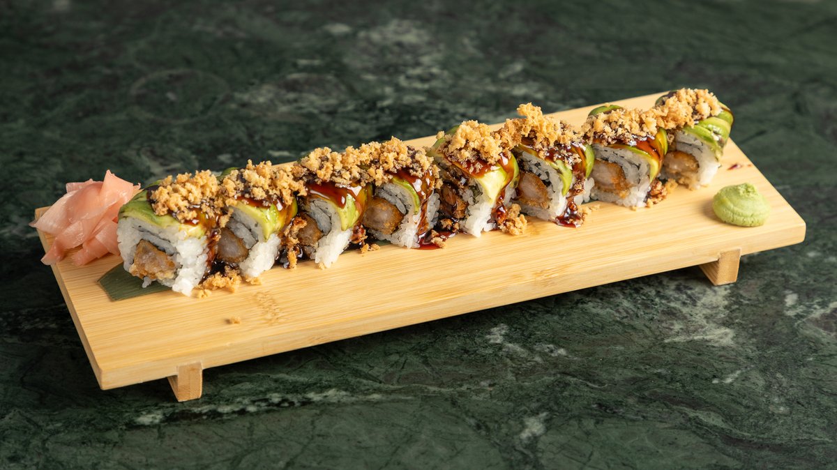Γαρίδα ταμπουρά, μαγιονέζα, αβοκάντο, teriyaki sauce και crispy tempura.