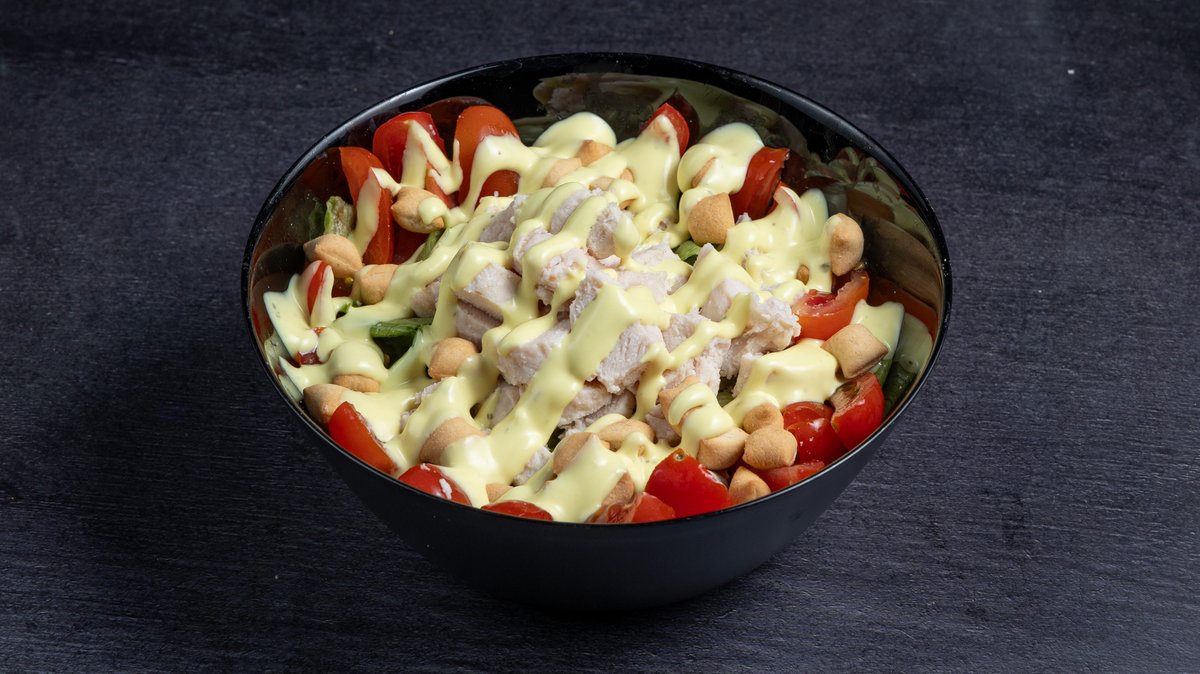 Σαλάτα με iceberg, κοτόπουλο, ντοματίνια, κρουτόν και Caesar`s sauce
