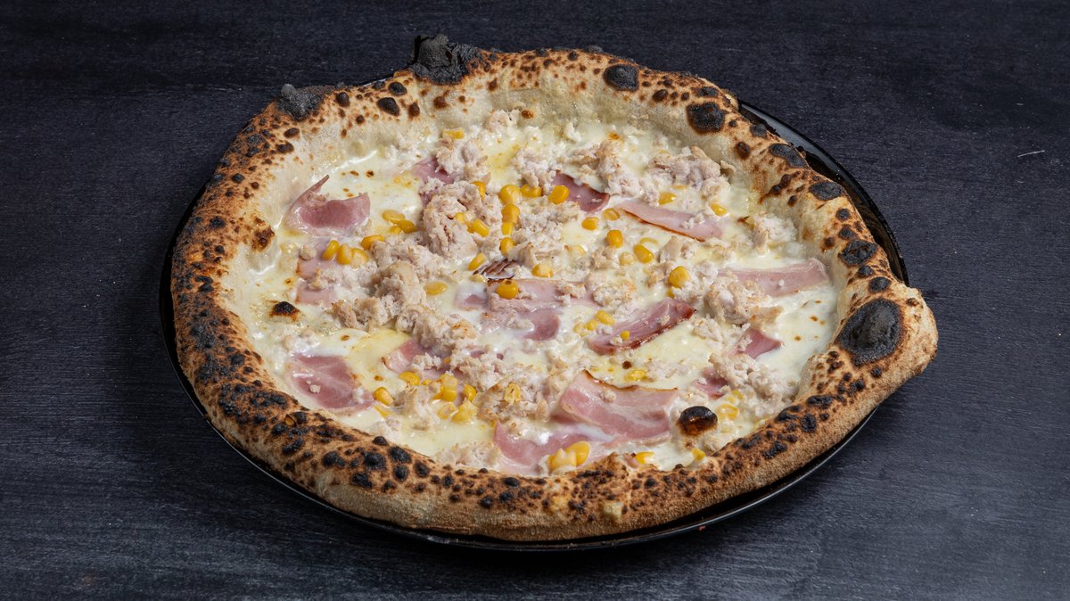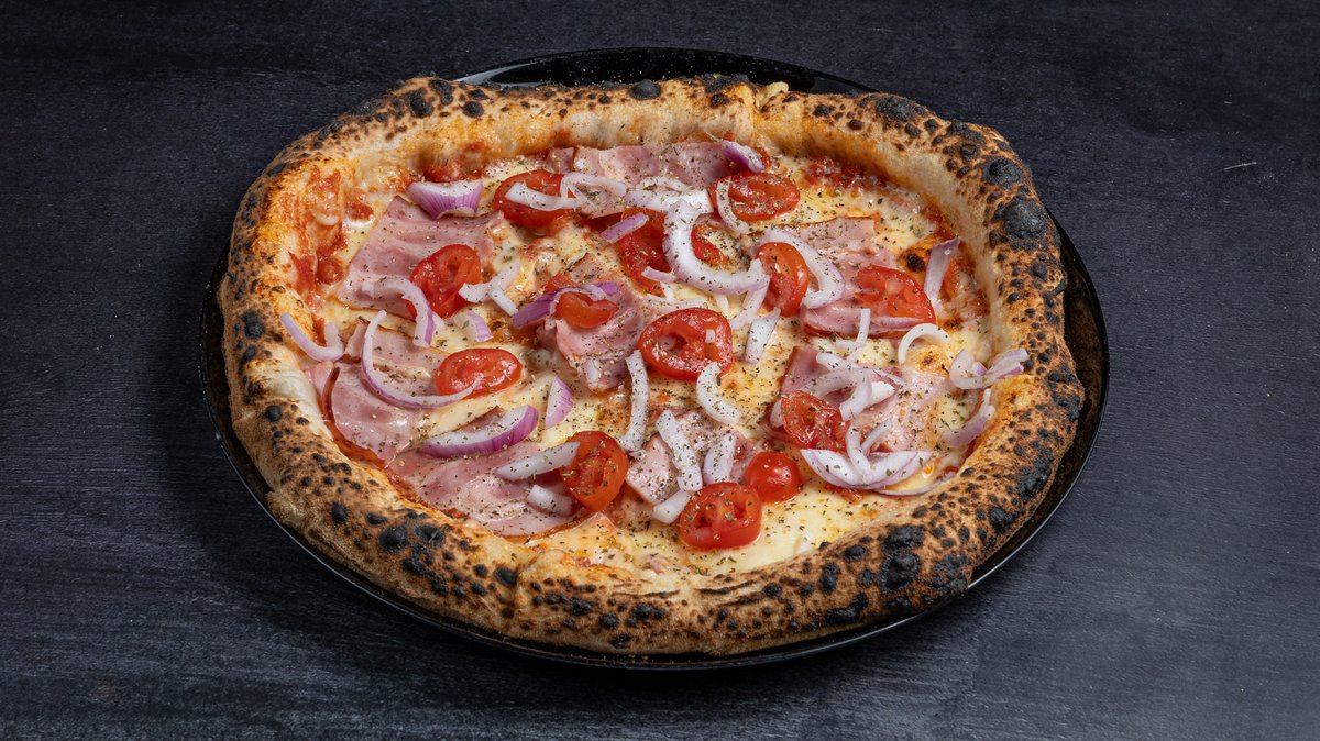 Με ιταλική σάλτσα ντομάτας, mix τυριών (gouda και mozzarella), ζαμπόν, μπέικον, πιπεριά πράσινη και μανιτάρια λευκά φρέσκα