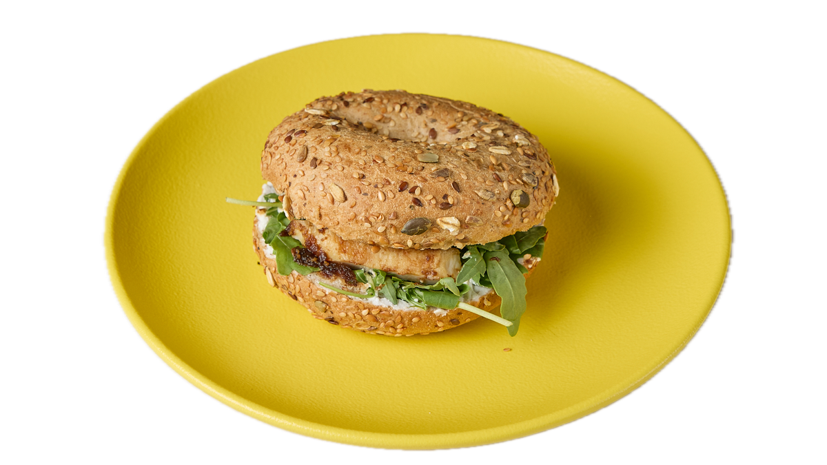Με gouda, κοτόπουλο, μπέικον, ντομάτα, μαρούλι και μαγιονέζα. Συνοδεύεται από πατάτες τηγανητές