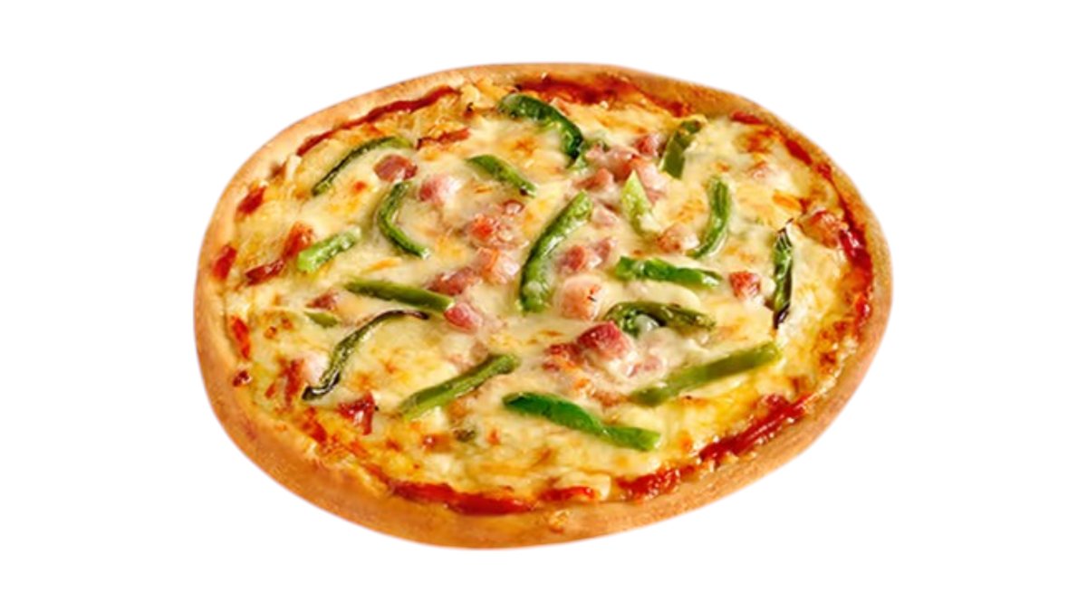 Γεμάτη και πλούσια γεύση σε αφράτη ζύµη µε γέμιση από µπέικον, µοτσαρέλα, τυρί ρεγκάτο, τυρί ένταµ, παρµεζάνα, ντοµάτα και πράσινη πιπεριά