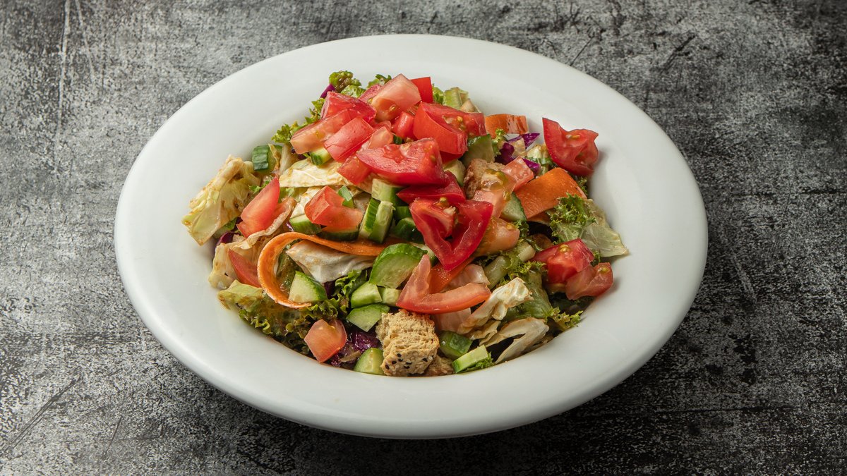 Σαλάτα με ντομάτα, αγγούρι, κρεμμύδι λευκό, πιπεριά αρωματική και φέτα.